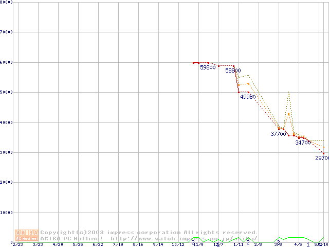 PC2700(DDR333) DDR SDRAM DIMMの最安値推移