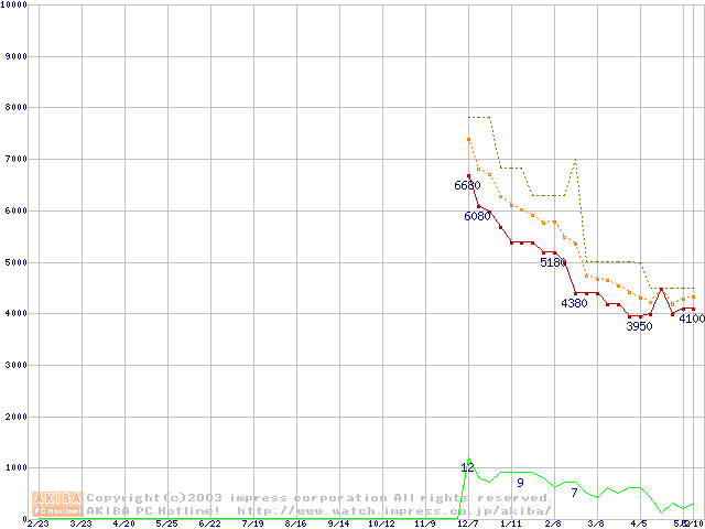 Socket 370 (PGA,FSB 100MHz,L2 64KB,Ezra)の最安値推移