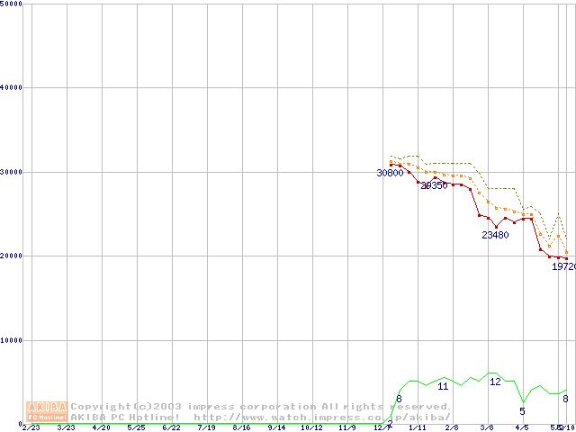 Athlon MP 2400+ (2GHz) リテールパッケージの価格推移