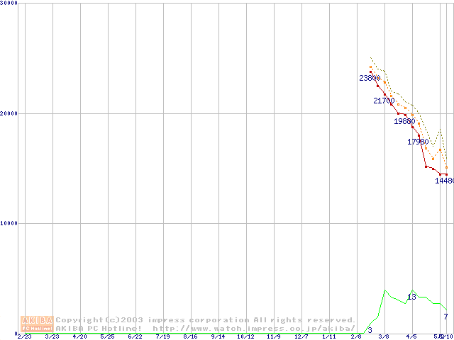 Socket A (OPGA,FSB 333MHz,L2 512KB,Barton)の最安値推移