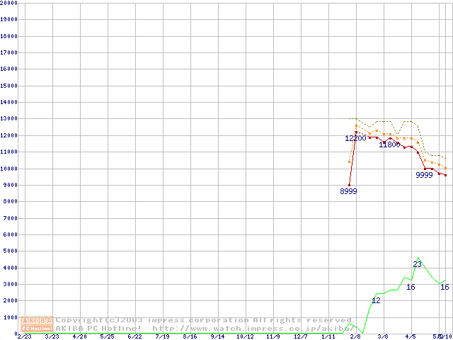 Athlon XP 2100+ (1.73GHz) リテールパッケージ(Thoroughbred)の価格推移