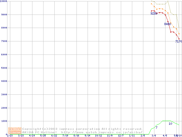 | Athlon XP 2000+ (1.67GHz) バルク(Thoroughbred)の価格推移 |