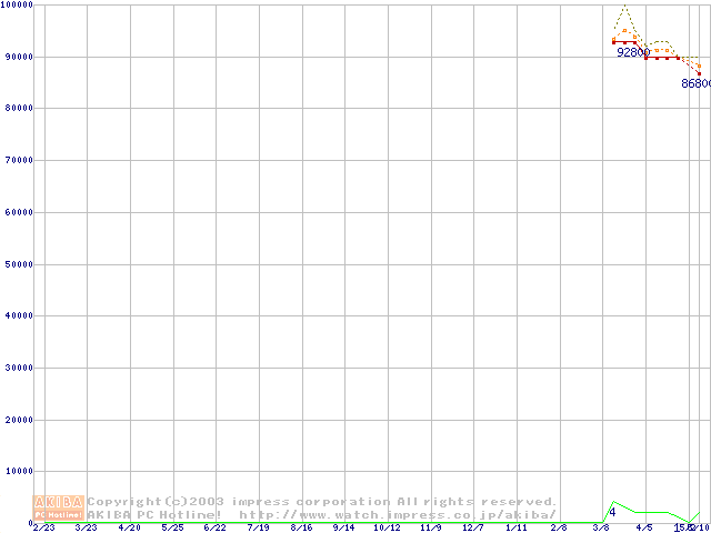 Socket 603 (micro-PGA,FSB 400MHz,L2 512KB,Prestonia)の最安値推移