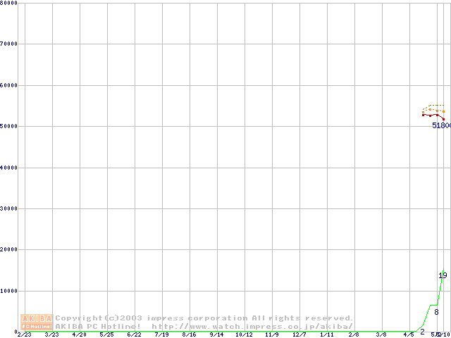 Socket 478 (micro-PGA,FSB 800MHz,L2 512KB,Hyper-Threading,Northwood)の最安値推移