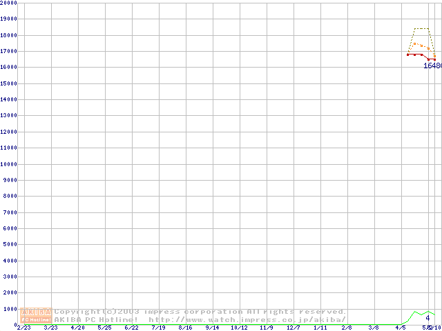 Travelstar 80GN (9.5mm,4200rpm,UltraATA/100,2MB,FDB,40GB/Platter)の最安値推移