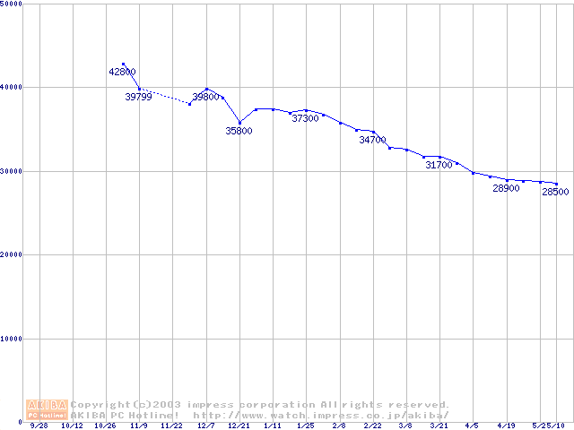 | [↑前グラフ]: | Travelstar 40GN (9.5mm,4200rpm,UltraATA/100,2MB,FDB,20GB/Platter)の最安値推移 |