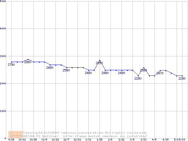 | [↑前グラフ]: | Socket A (PGA,FSB 200MHz,L2 64KB,Morgan)の最安値推移 |