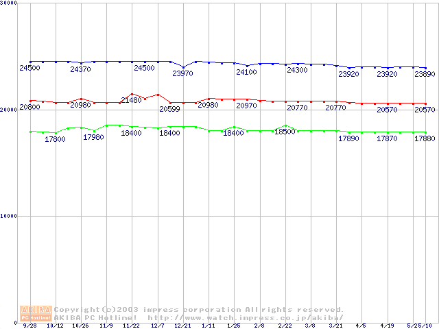 | [↑前グラフ]: | Socket 478 (micro-PGA,FSB 400MHz,L2 128KB,Willamette)の最安値推移 |