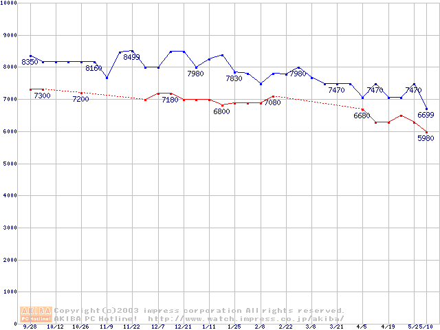 | [↑前グラフ]: | Fireball 3 (5400rpm,UltraATA/133,2MB,FDB)の最安値推移 |