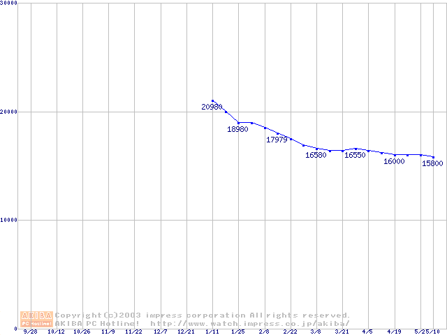| [↑前グラフ]: | Barracuda ATA V (7200rpm,SerialATA,8MB,60GB/Platter,FDB)の最安値推移 |