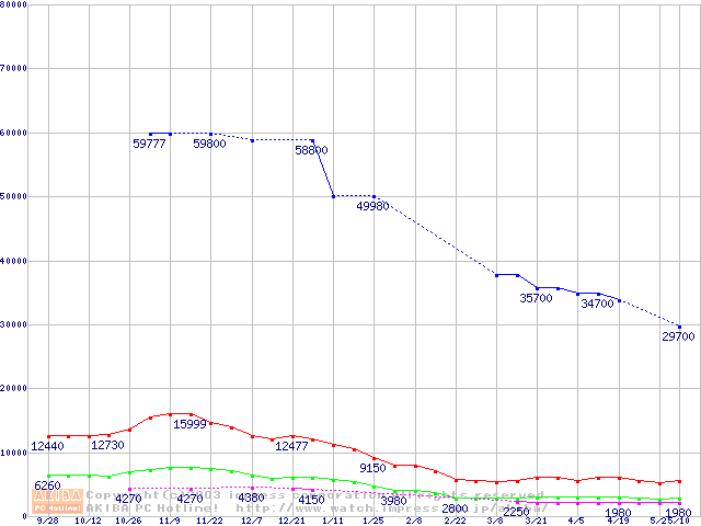 PC2700(DDR333) DDR SDRAM DIMMの最安値推移