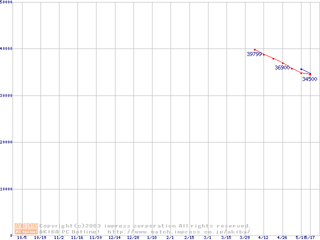 | 2.5インチHDD主要製品(最安値3万円以上)の最安値推移 |