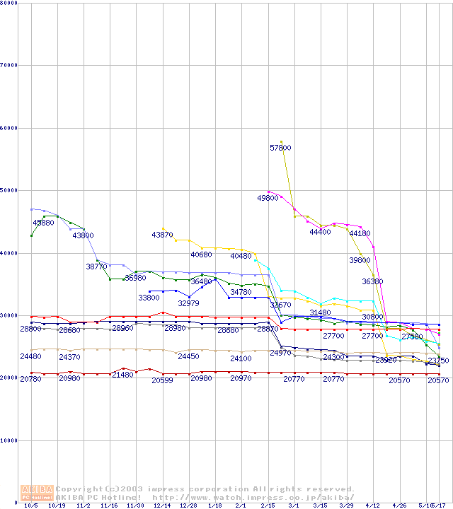 CPU主要製品(最安値2万円~3万円未満)の最安値推移