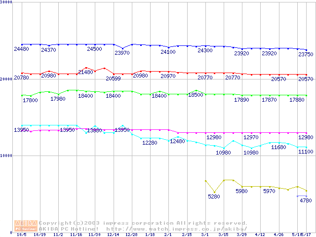 | [↓次グラフ]: | Socket 370・FSB 100MHzの最安値推移 |