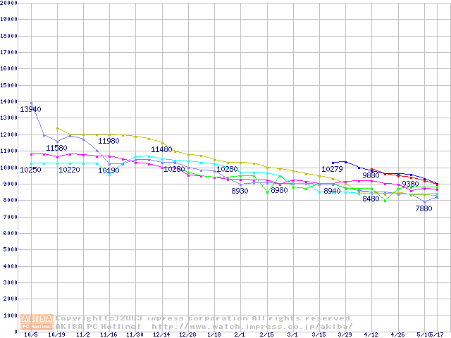 | [↓次グラフ]: | HDD 80GB~100GB未満(7200rpmクラス)の最安値推移 |