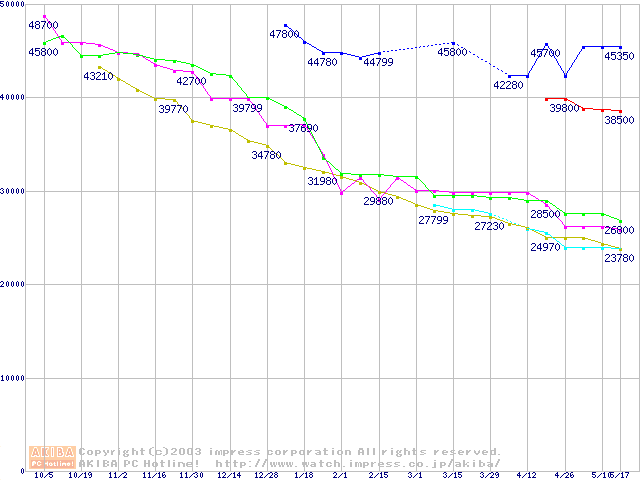 HDD 160~200GB未満(7200rpmクラス)の最安値推移
