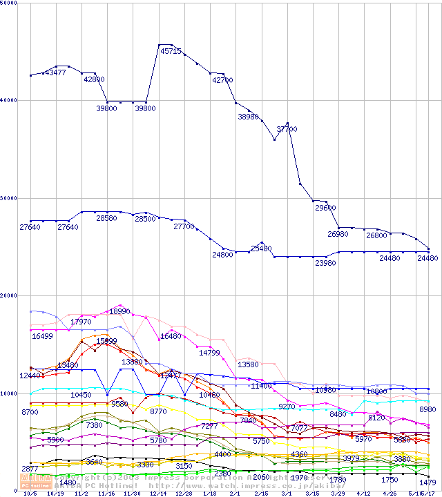 メモリ主要製品の最安値推移