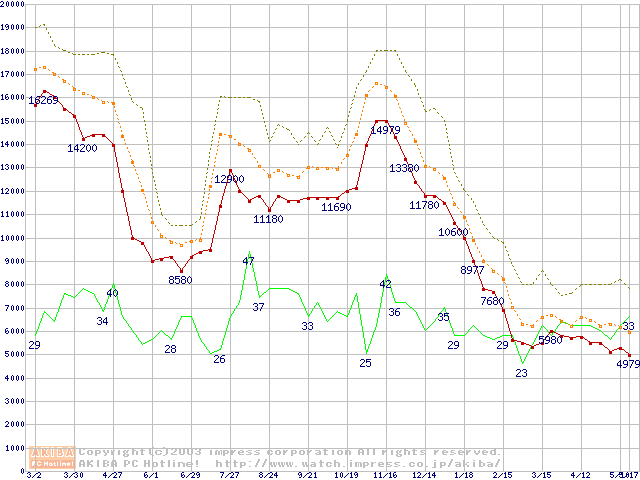 PC2100 DDR SDRAM 512MB(CL2.5)の価格推移