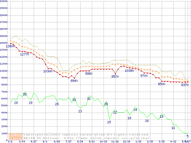 Barracuda ATA IV (7200rpm,UltraATA/100,2MB,40GB/Platter,FDB)の最安値推移