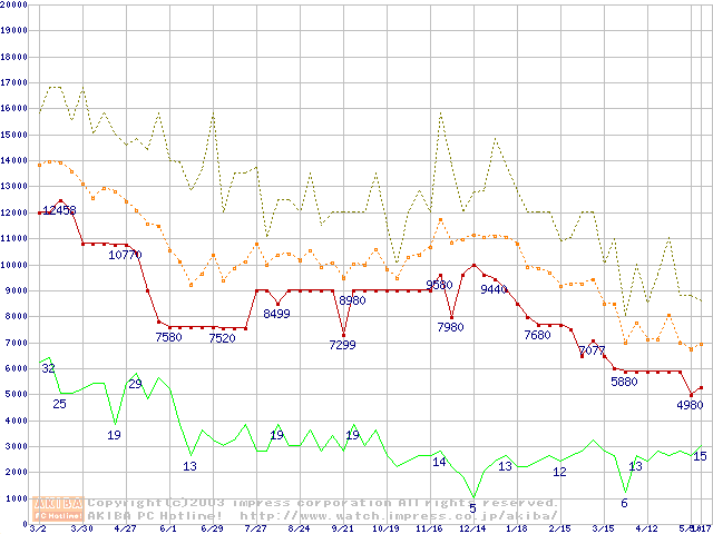 メモリ主要製品の最安値推移