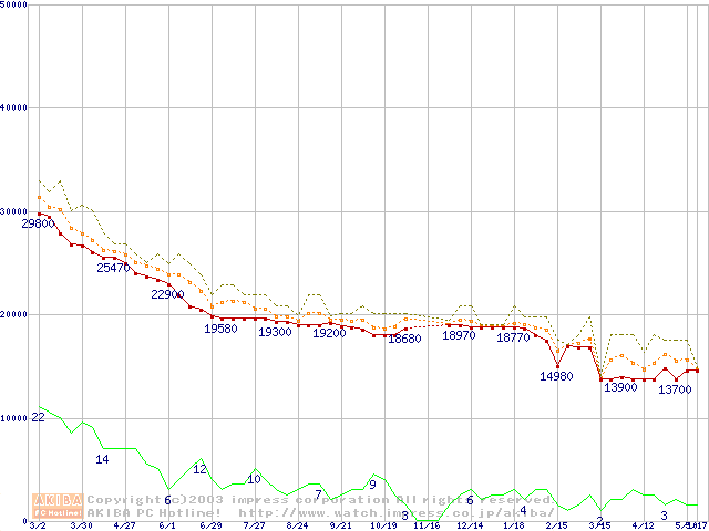 WD Caviar (7200rpm,UltraATA/100,2MB)の最安値推移