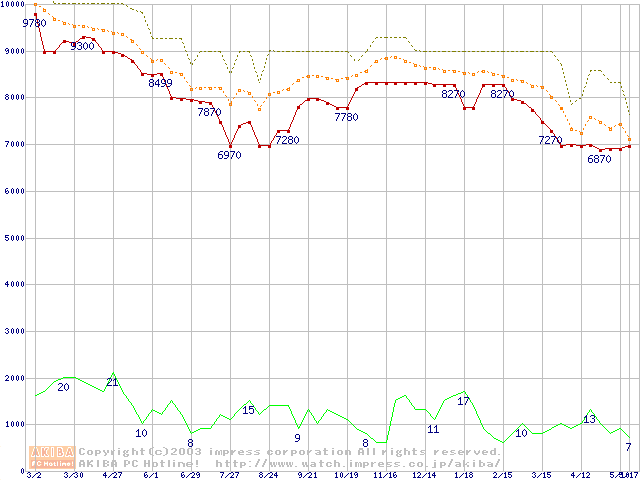 WD Protege (5400rpm,UltraATA/100)の最安値推移