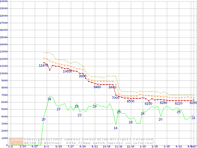 Celeron 1.40GHz FC-PGA2 リテールパッケージの価格推移