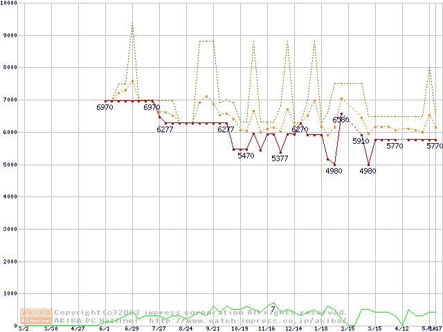 PC800-40 DRDRAM RIMM ECC対応の最安値推移