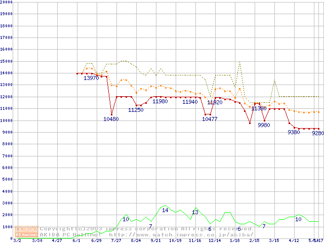 PC800-40 DRDRAM RIMM ECC対応の最安値推移