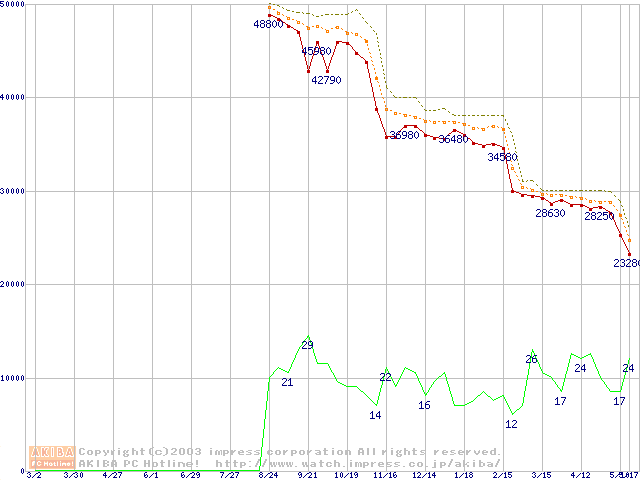 Pentium 4 2.66GHz リテールパッケージの価格推移