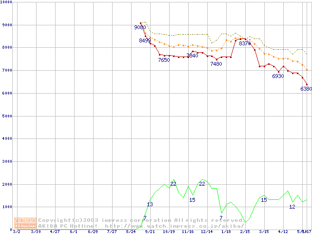 DiamondMax Plus 8 (7200rpm,2MB,UltraATA/133,FDB)の最安値推移