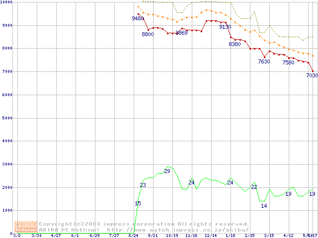 DiamondMax Plus 8 (7200rpm,2MB,UltraATA/133,FDB)の最安値推移