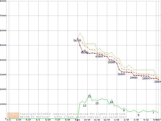 WD Caviar(Special Edition) (7200rpm,UltraATA/100,8MB)の最安値推移
