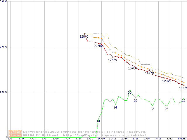 DiamondMax Plus 9 (7200rpm,2MB,UltraATA/133,FDB)の最安値推移