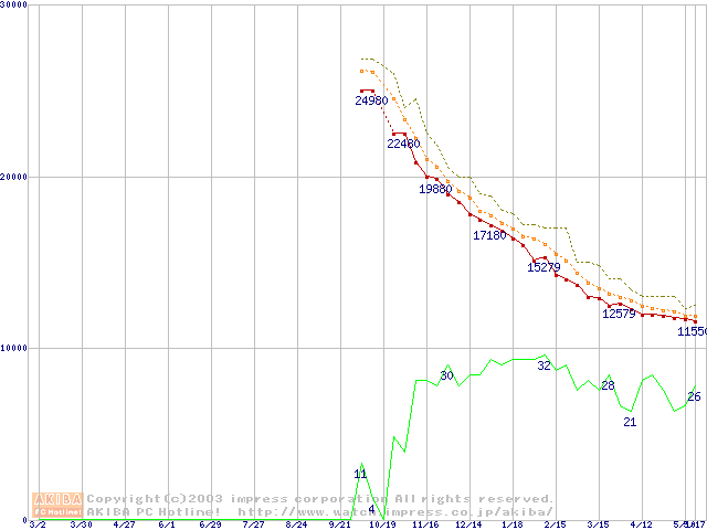 Deskstar 180GXP IC35L120AVV207-0 (120GB)の価格推移