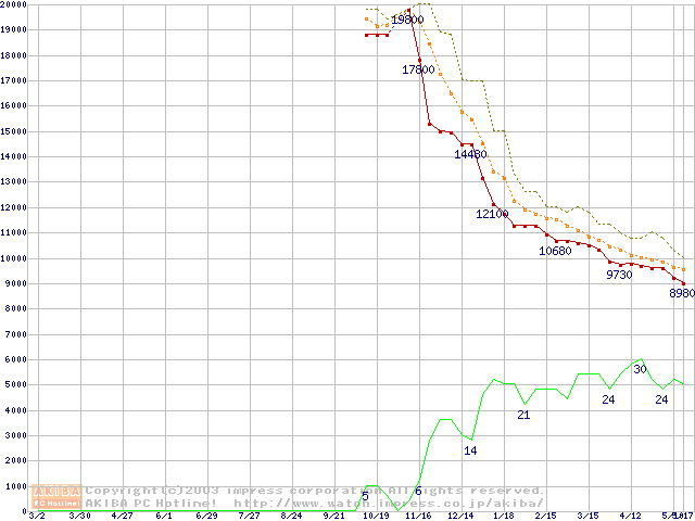 Deskstar 180GXP IC35L090AVV207-0 (80GB)の価格推移
