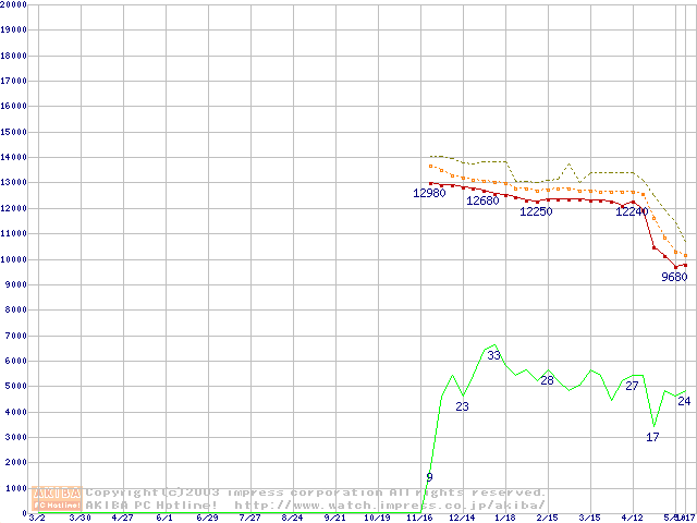 Socket 478 (micro-PGA,FSB 400MHz,L2 128KB,Northwood)の最安値推移