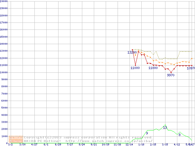 MHSシリーズ (9.5mm,4200rpm,UltraATA/100,2MB,FDB,30GB/Platter,FDB)の最安値推移