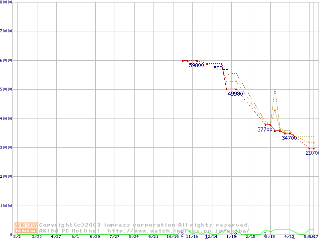 PC2700(DDR333) DDR SDRAM DIMMの最安値推移