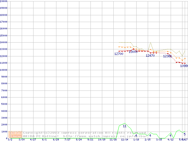 MKシリーズ (9.5mm,4200rpm,2MB,FDB,30GB/Platter)の最安値推移