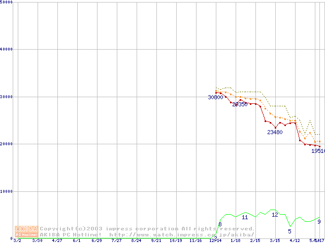 Athlon MP 2400+ (2GHz) リテールパッケージの価格推移