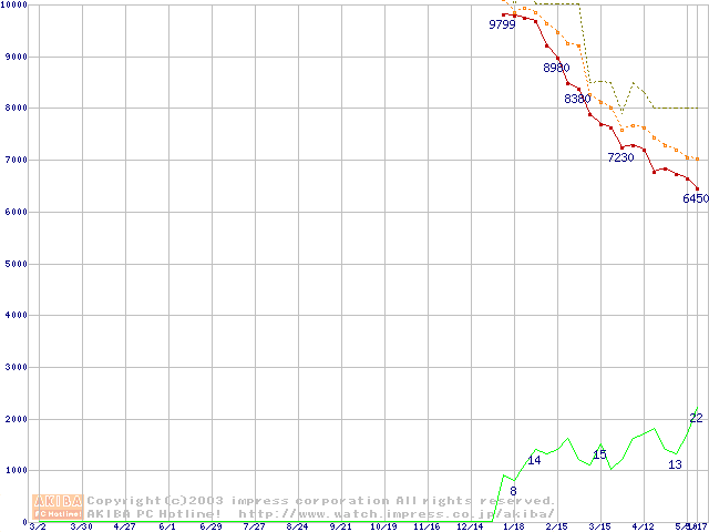 Barracuda 5400.1 (5400rpm,UltraATA/100,2MB,FDB)の最安値推移