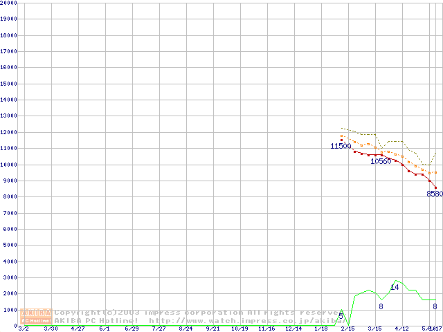Socket A (OPGA,FSB 266MHz,L2 256KB,Thoroughbred)の最安値推移