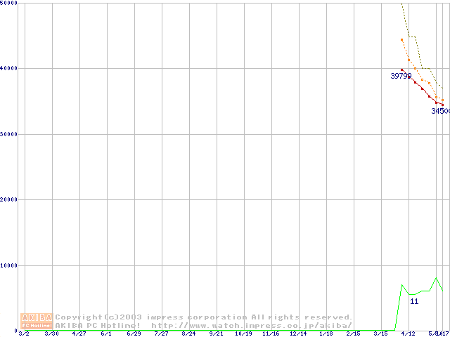 Travelstar 80GN (9.5mm,4200rpm,UltraATA/100,8MB,FDB,40GB/Platter)の最安値推移