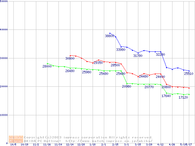 | [↓次グラフ]: | Socket A (OPGA,FSB 266MHz,L2 256KB,Palomino)の最安値推移 |