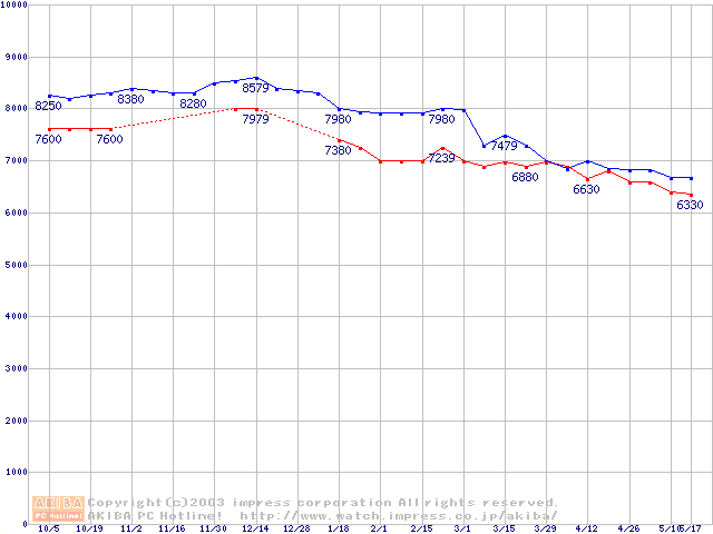 | Fireball 3 (5400rpm,UltraATA/133,2MB,FDB)の最安値推移 |