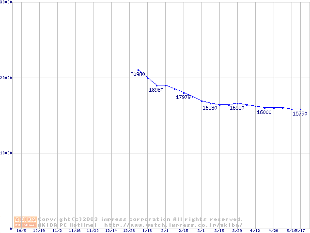 | [↑前グラフ]: | Barracuda ATA V (7200rpm,SerialATA,8MB,60GB/Platter,FDB)の最安値推移 |