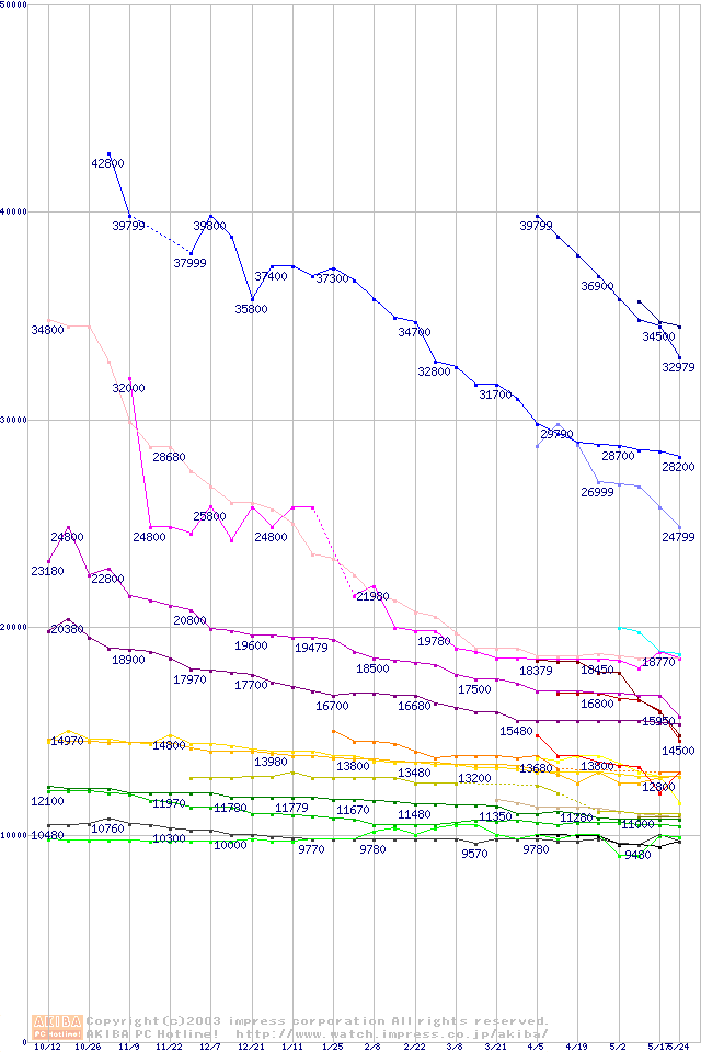 2.5インチHDD主要製品の最安値推移