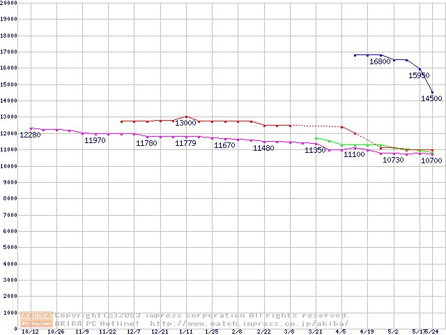 | [↑前グラフ]: | 2.5インチHDD 20GB~30GB未満(9.5mm厚)の最安値推移 |