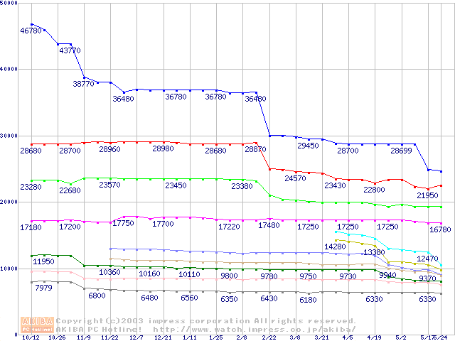 | [↓次グラフ]: | Socket 370・FSB 133MHzの最安値推移 |